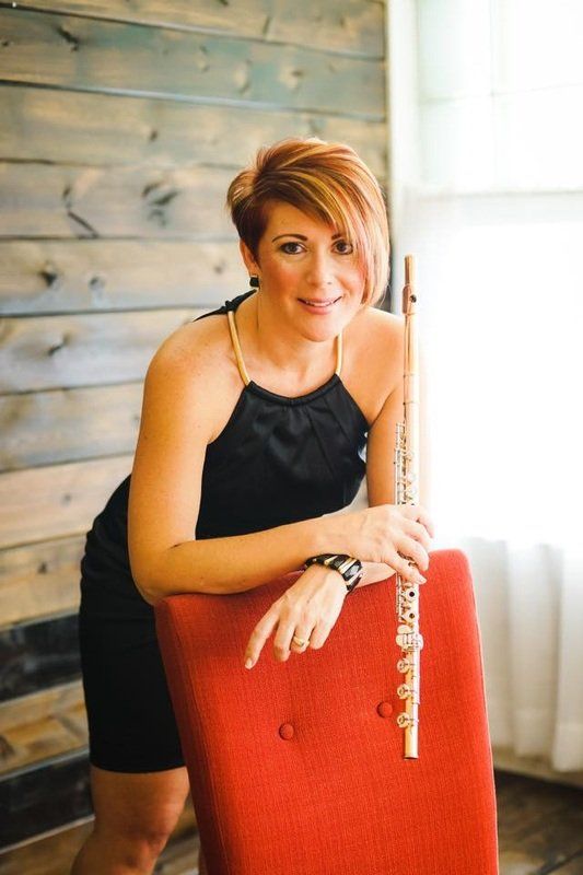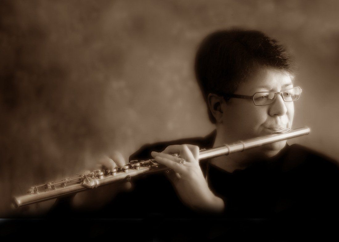 Kristin Grant (with contra bass flute) and Jackie Flowers (with bass flute)